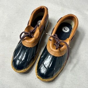 Classic Sporto duck boots in brown and navy — water-resistant, comfy, and perfect for rainy days or fall outfits 🍂 Gently used and in great shape.