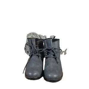 Sporto Gray Hornet Leather Faux Fur Ankle Boots Women Sz 6