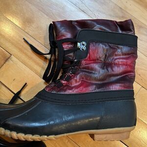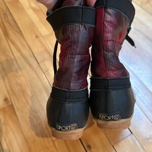 Sporto Kate red/black/gray plaid lace up duck boots. Fleece lined. Size 9. Excellent condition. Nonsmoking home.