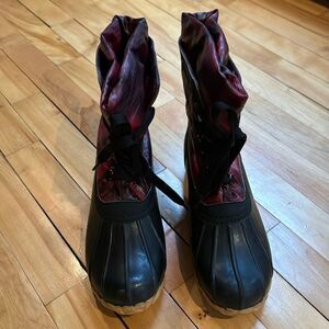 Sporto Kate red/black/gray plaid lace up duck boots. Fleece lined. Size 9.