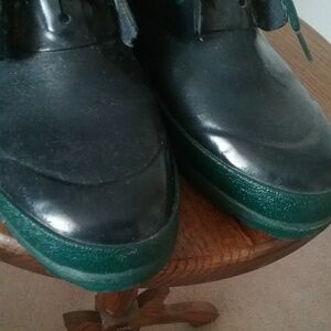 These boots are pre owned but in great condition. They do have some signs of wear and have a dull finish on the top of the shoe. There is still plenty of life left .
