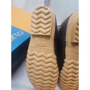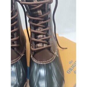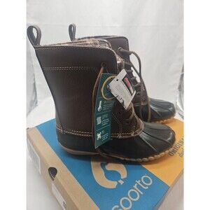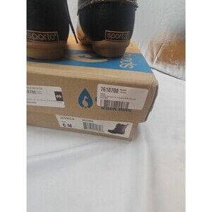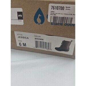 The Sporto Original Duck Boot Jessica in women's size 6M is a stylish and functional choice for winter weather. These brown rain and snow boots feature a waterproof design, making them perfect for braving icy conditions. Made with a combination of leather and man-made materials, these boots offer comfort and durability. The boots are designed specifically for winter, with a snow boot style that provides extra warmth and support. Perfect for any woman looking for a reliable and fashionable footwear option during the colder months.