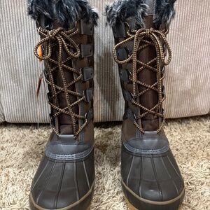 Sporto Waterproof Duck Boot Tall Lace Up Winter Boots Insulated Chocolate Size 7