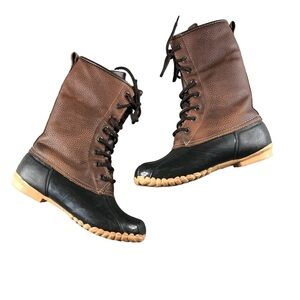 Sporto Womens Brown Leather Mid Calf Lace Up Fleece Lined Duck Boots Gorpcore