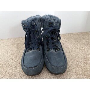 Sporto Women's Erica Ankle Booties Sz. 8.5M Blue Suede Faux Fur Comfort Walking