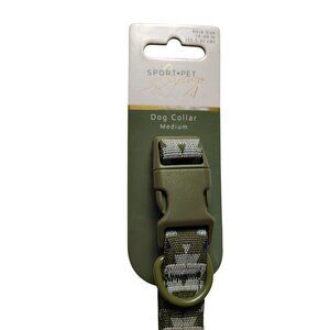 This high-quality medium-sized dog collar boasts a rugged green camo design, blending style and functionality. Crafted by Sportpet Living, it features an adjustable strap for a perfect fit and a secure plastic buckle. Ideal for medium-sized dogs, it combines durability and aesthetic appeal, making every walk a statement of taste.