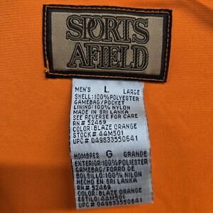 Sports Afield Blaze Vest Large Orange Shoulder Hunting Pockets Gamebag