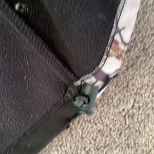 Sports Afield Jacket. Light pink Mossy Oak pattern that runs down the side of black jacket. Lightweight zippered up, zippered pockets. Fleece inside Polyester and spandex Outer shell. Great condition no stains or snags. Size Large. P2P 26”, length 27”, sleeves 24” and Velcro wrist adjustment,