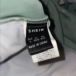 Sage green sports bra with renovable padding and criss-cross back BY SHEIN and Matching color panties with 'love pink' waistband by Victoria’s Secret PINK