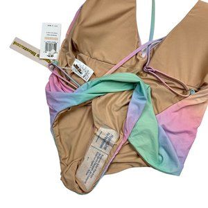 Sports Illustrated Rainbow Print One Piece Swimsuit Size 12 Plunge Neck Maillot