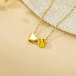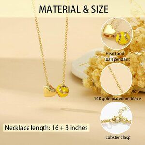 Features: Dainty brass necklace featuring a sporty softball charm paired with a sweet heart, perfect for showing support or gifting. Flexible fit, comfortable wear, suitable for daily or sporty days.