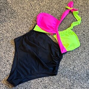 Set of two racerback sports bras in neon pink and white. Both double lined and w/pads. No stains or unoriginal holes. Soft material