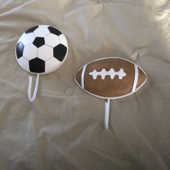 Football and soccer ball hooks. Excellent condition. Can be used for coats, hats, sweatshirts, etc!