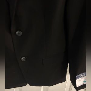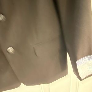 Fully lined navy blue. 2 button