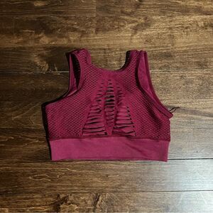 Maroon sports bra with small cut out details. No size tag but fits like a medium. Brand new.