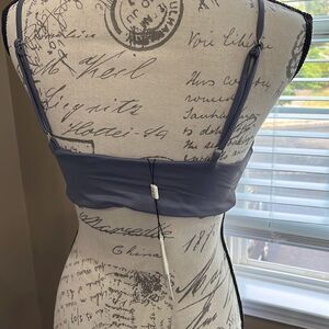 Brand new with tags ladies dark blue almost looks gray sports bra. Size is medium