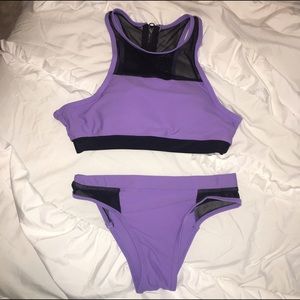 Sporty purple bikini with mesh cutouts. Great for any sort of water activity where you need to ensure coverage. From China, so technically a L but fits like a S/M. I'm a 32C in tops and it fits well, and a 0-2 in Bottoms and these fit great. Never worn before. Offers considered.