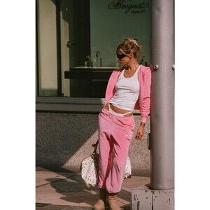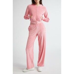 Sporty & Rich Health Ivy Cotton Velour Sweatpants Pink Large Retro Sporty Lounge