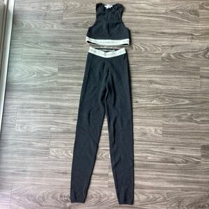 Sporty & Rich Serif Logo Knit Legging and Bra Set Black and White Small