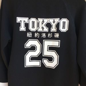 Sporty Tokyo Jersey crew neck. 97% Polyester. No flaws at all. True black w/white graphics. Women's S can fit M. 🇯🇵