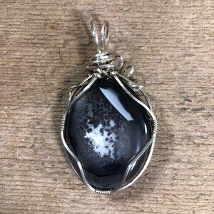 Spotted Agate Silver Wire Wrapped Necklace Pendant