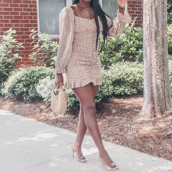 Spotted Print Ruffle Mini Dress