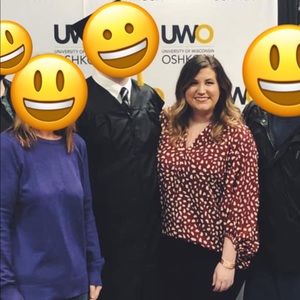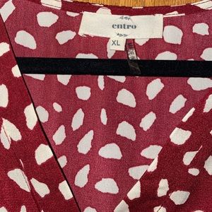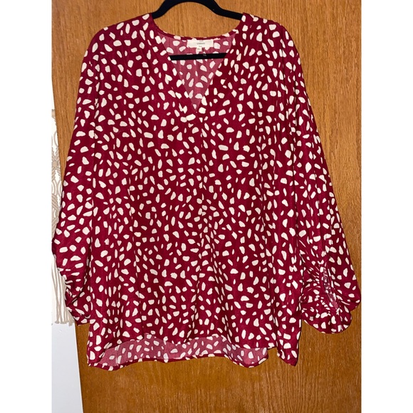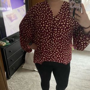 Super cute maroon blouse with fun spotted detailing. Chiffon like material with minimal stretch, but runs oversized and is so flattering! Perfect for work or another event you need to dress up for! Worn twice.