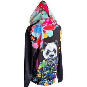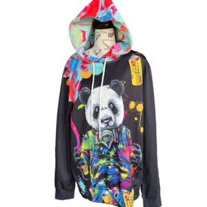 Unisex Hoodie, spray painting panda. Size Med # 1049