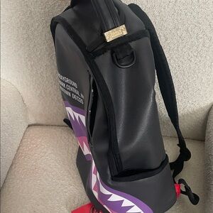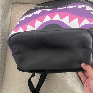 Eye-catching Sprayground backpack with bold shark design. Features black, purple and pink colors. Ideal for standout style. All flaws shown, both zippers work just one missing pull easy fix☺️ UPDATE: lost the tag sorry !! Not included.