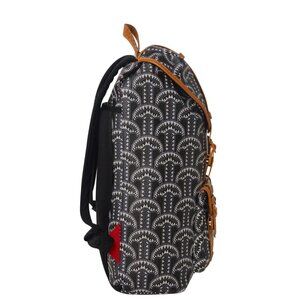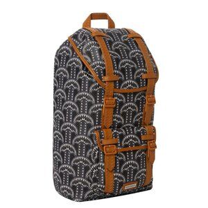 Dimensions: 20.5" x 5" x 11.5" • Top Flap opening w/ adjustable magnetic snap buckle closure • Draw-string closure • Front pocket with adjustable magnetic snap buckle closure • Ergonomic mesh back padding • Adjustable straps for custom sizing • Nylon zippers with metal hardware • Embossed sharkteeth straps • Slide through back sleeve connects to carry-on luggage to free your hands