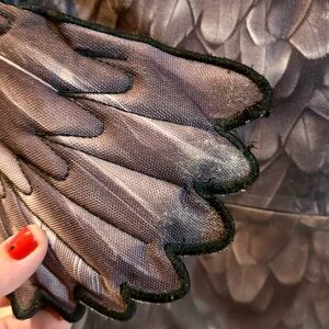 Stylish backpack with winged feather design. Features brown and gray tones. Ideal for fashion-forward individuals.