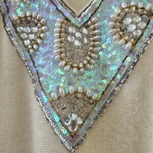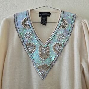 Spree International Vintage Embellished Wool Angora Sweater Beaded Cream Women M