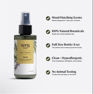 Spritz your way to a stronger day with a Shield body & linen mist. Rosemary and tea tree join forces to create a scent that is deeply aromatic and fresh. Mist directly onto skin, clothing, linens, yoga mats, and towels, and step into a moment of strength.