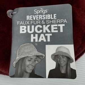 Stay warm and stylish with this cozy reversible bucket hat by Sprigs. Choose between a plush faux fur look or a textured sherpa finish. Perfect for casual outings, travel, or winter wear.