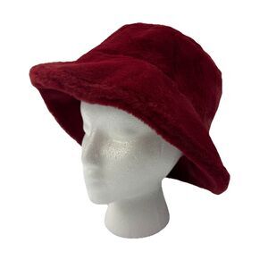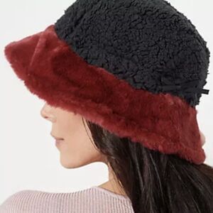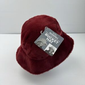 Sprigs Reversible Faux Fur Sherpa Bucket Hat Adjustable Red Black One Size NWT