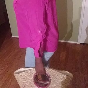 Button down with roll up button sleeves