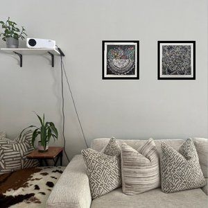 A black frame highlights the art.