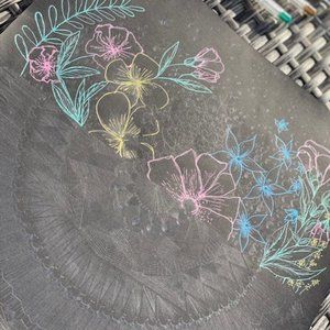 Original, inspired by my daily life. Mixing nature with intricate line work. Inspired by the small details each flower petal and leaf. Early mornings while the suns warmth is still so like and capturing that bouncing off nature. Witnessing as the flowers interact with the wind.