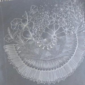 I am passionate about drawing, and the intricacy I can create with simple materials. Black cardstock and a pencil are my tools of choice. With these I can create and get lost in the details. The imperfection of nature inspired the soft flowers against the sharp complex lines.