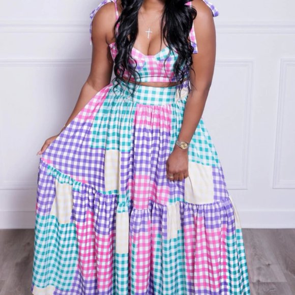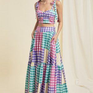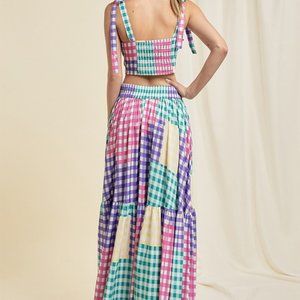 PLAID COLOR BLOCKED TOP AND MAXI SKIRT SET