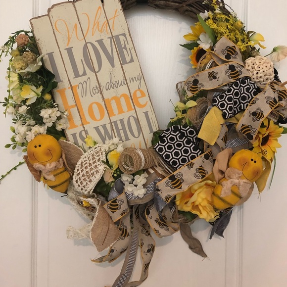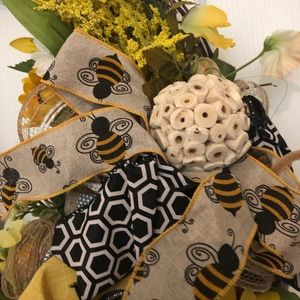 Perfect spring door wreath- Has two cute bees and honeycomb accented with new ribbon.