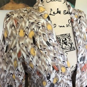 Great colors and style!! Ruching casually pushes up the three-quarter-length sleeves of an open-front blazer cut for a short and sweet fit. A contrasting lining adds an extra touch of style. Originally purchased at Nordstrom.