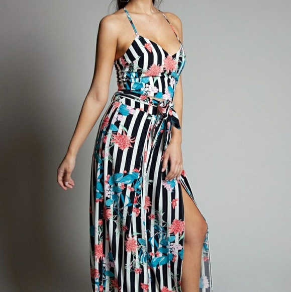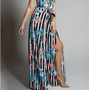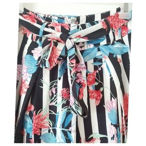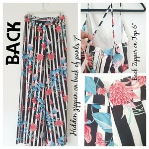 NWT - NEW - Very good quality & beautiful two piece set with fresh spring flower print, tank top style top w/ straps & wideleg pants w/ slits on sides. Perfect for any casual special occasion, brunch, or a weeding!