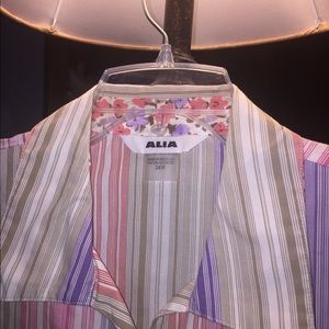 Pink, purple, Green striped Blouse. 3/4 sleeves. Button front. Perfect layered. Very gently Worn.