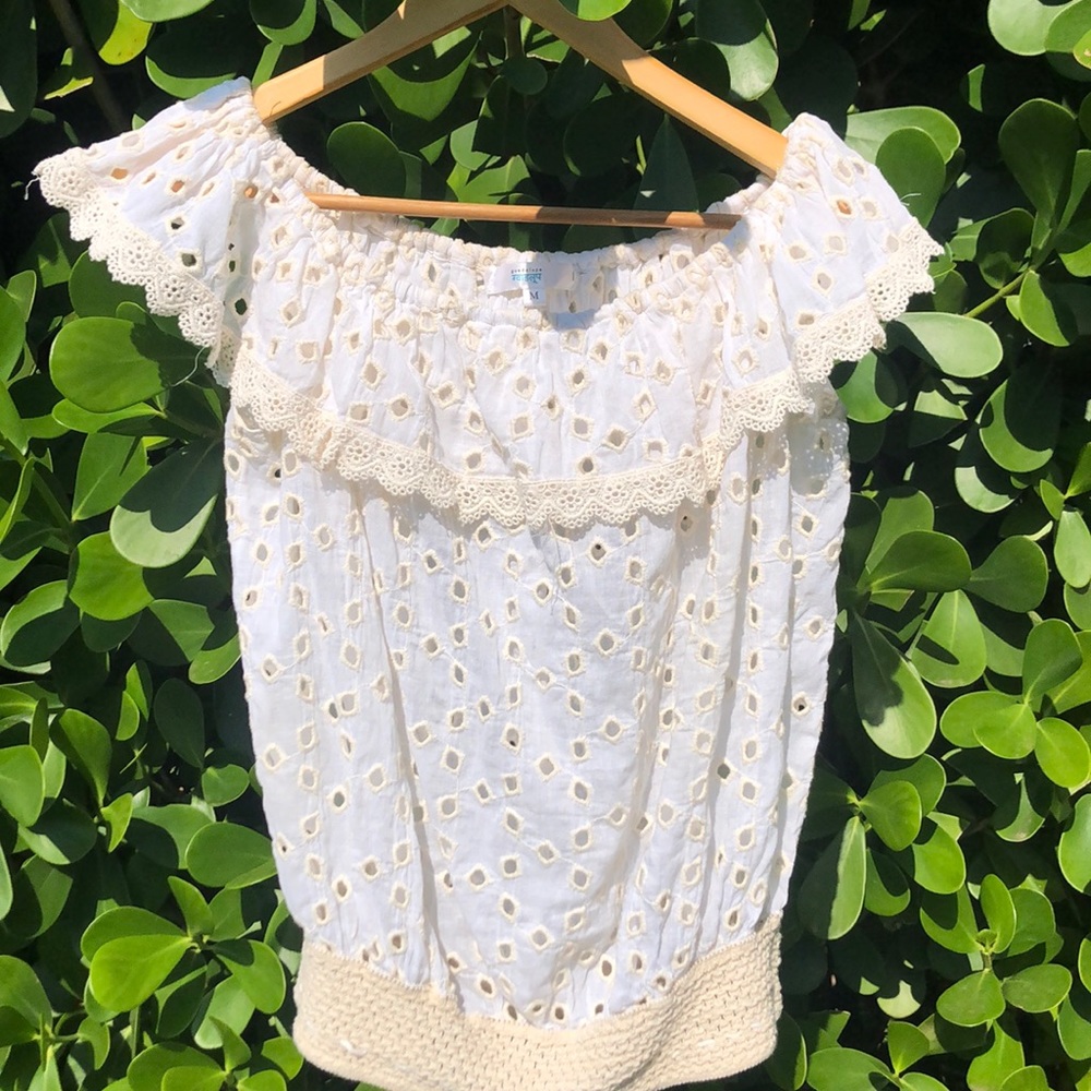 Can be worn off the shoulders, on shoulders or one shouldered! Fun, flirty blouse!