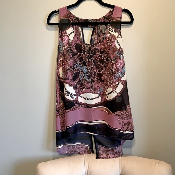 Light weight sleeveless blouse, purple and blue paisley design. Wore with work leggings or skinny fit slacks.