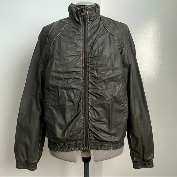 Slightly padded. Lightweight casual jacket with a biker yet feminine look.