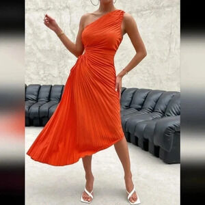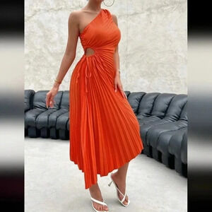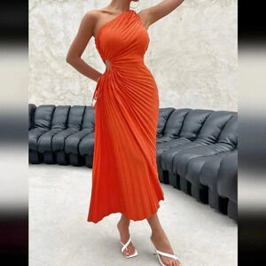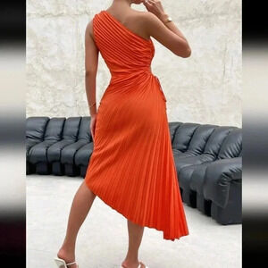 Spring Break One Shoulder Cut Out Waist Pleated Asymmetrical Hem Pro