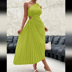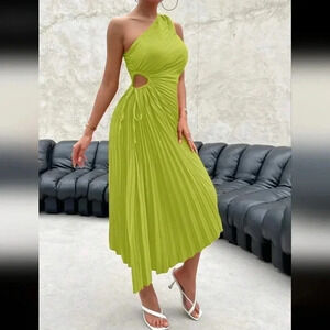 Spring Break One Shoulder Cut Out Waist Pleated Asymmetrical Hem Pro