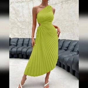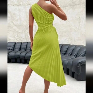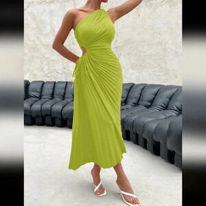 Spring Break One Shoulder Cut Out Waist Pleated Asymmetrical Hem Pro